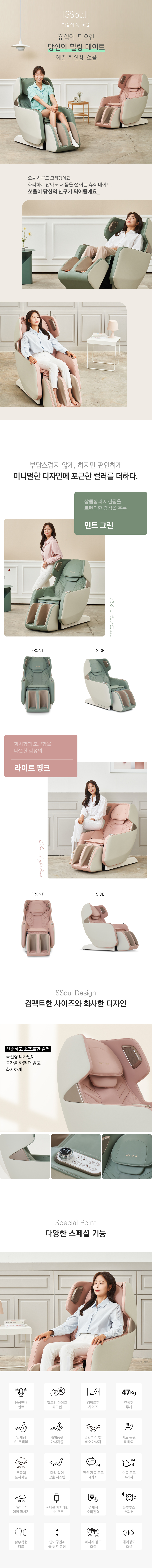 웰모아 안마의자 렌탈 60개월 쏘울 미니 컴팩트 (라이트핑크)